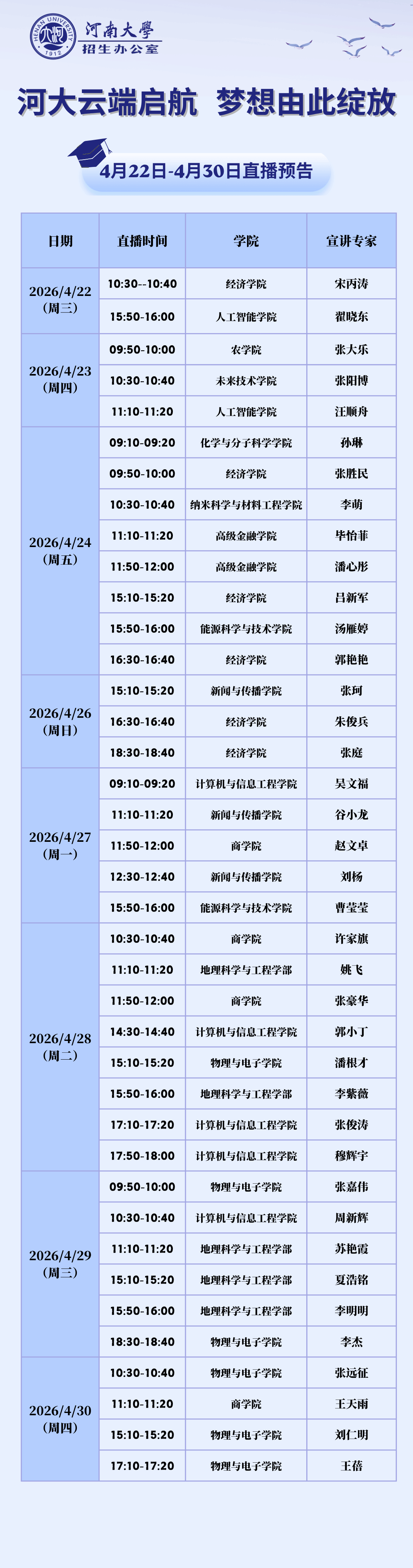 4月22日——4月30日直播排期如下图: